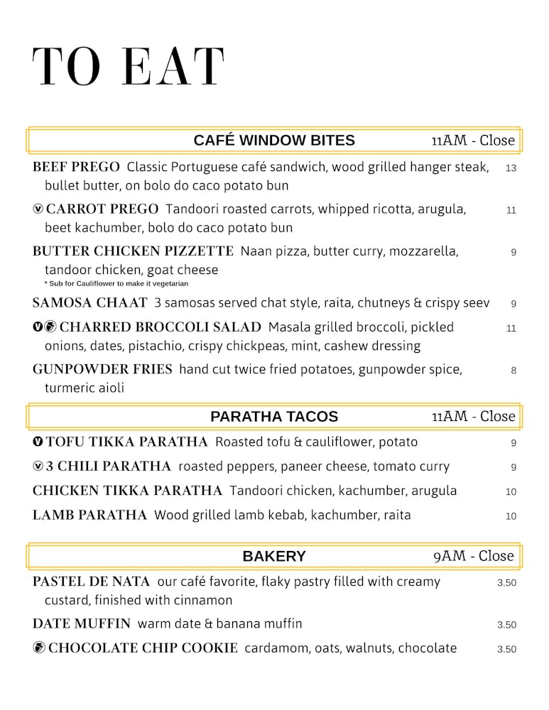 Serving espresso drinks, Ayurvedic beverages, house-made pastries, snacks, and paratha tacos.