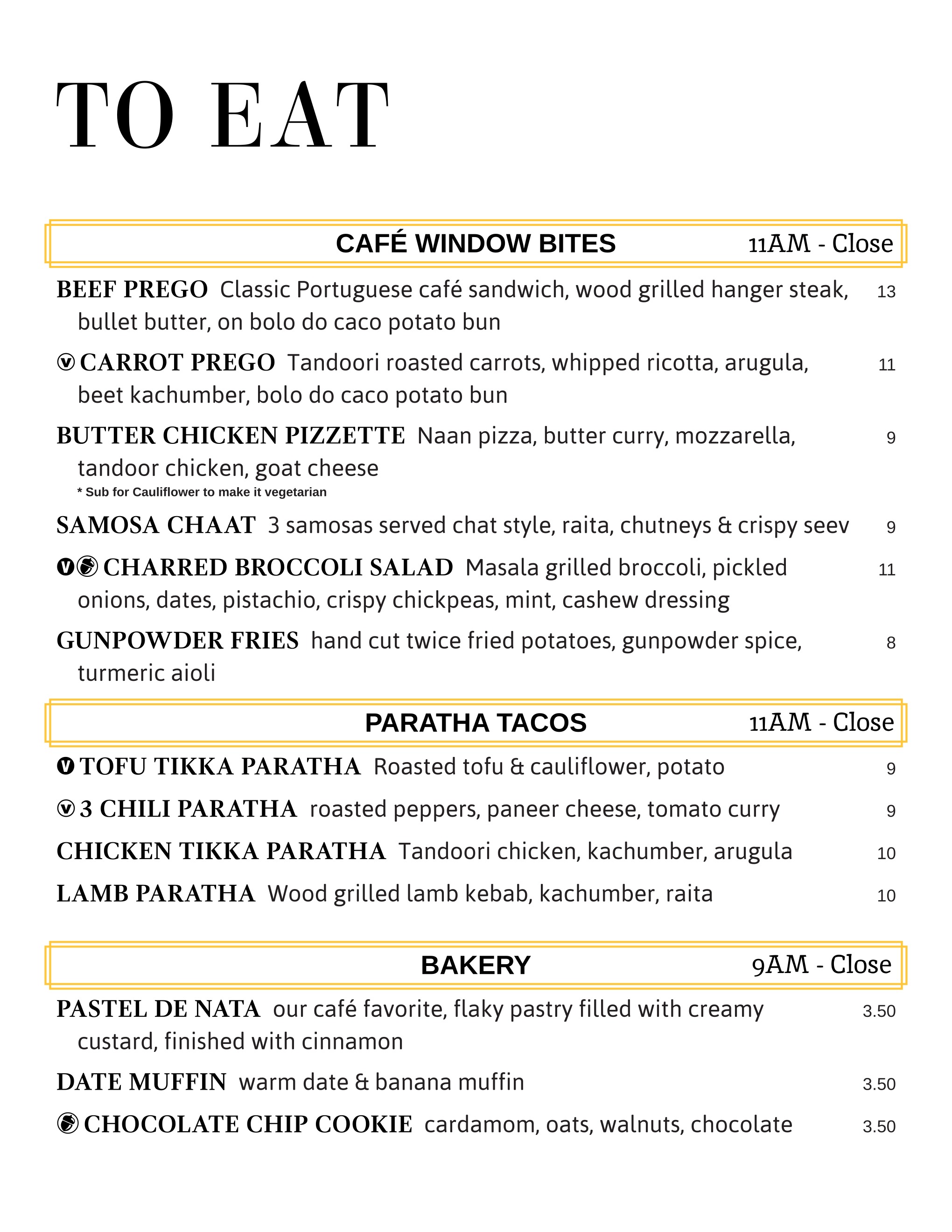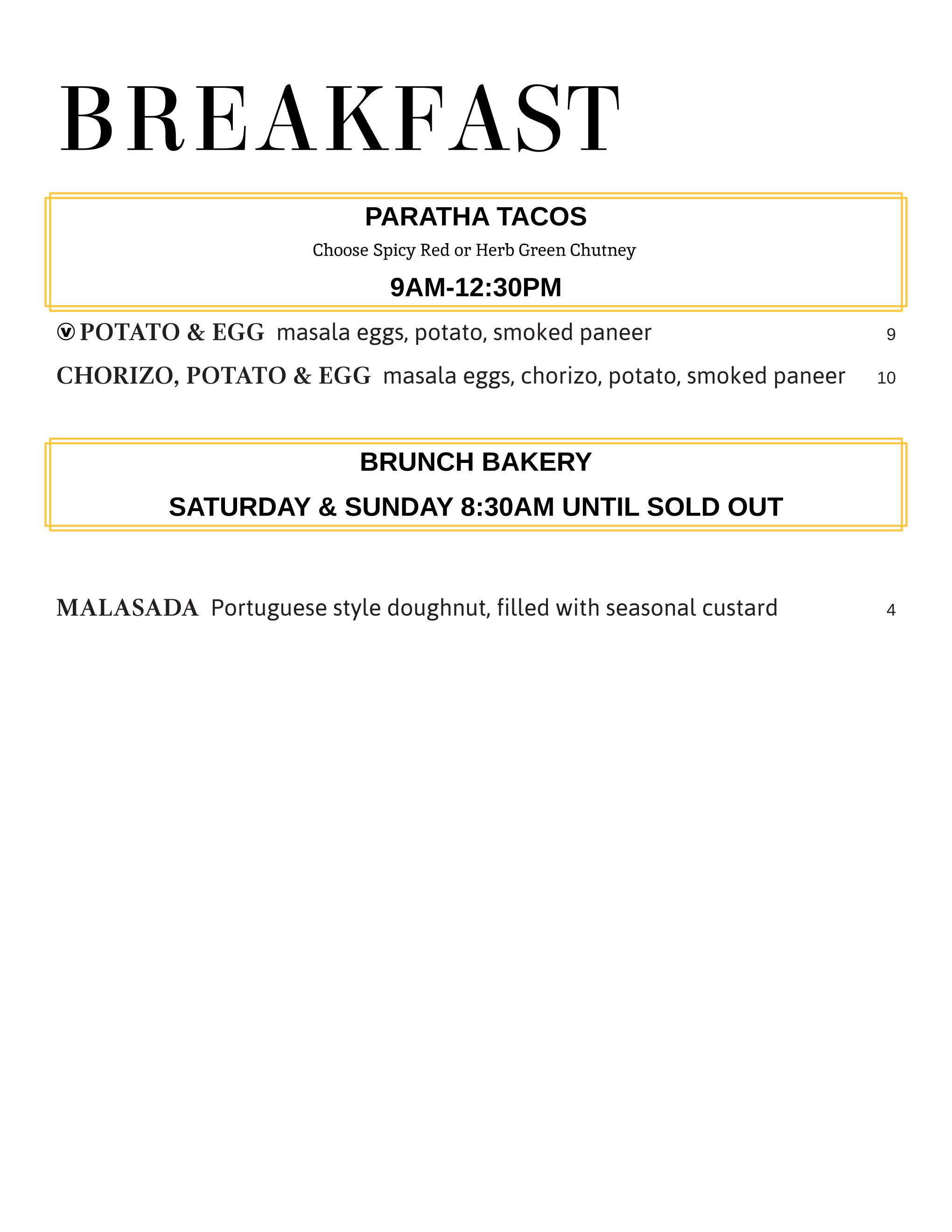 Serving espresso drinks, Ayurvedic beverages, house-made pastries, snacks, and paratha tacos.