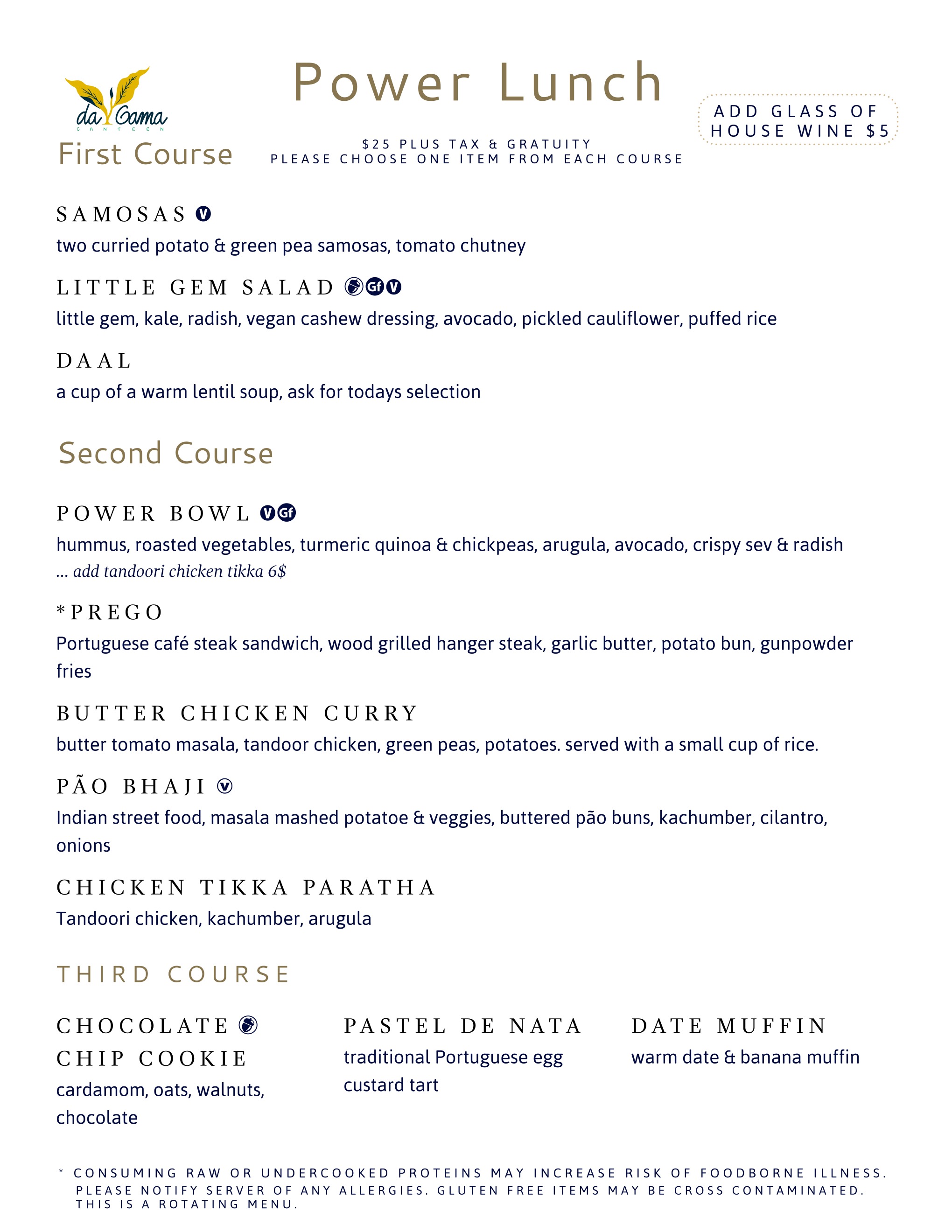 Enjoy a 3 Course Lunch Menu Monday through Friday 11-2:30pm. Menu is subject to change with no notice.