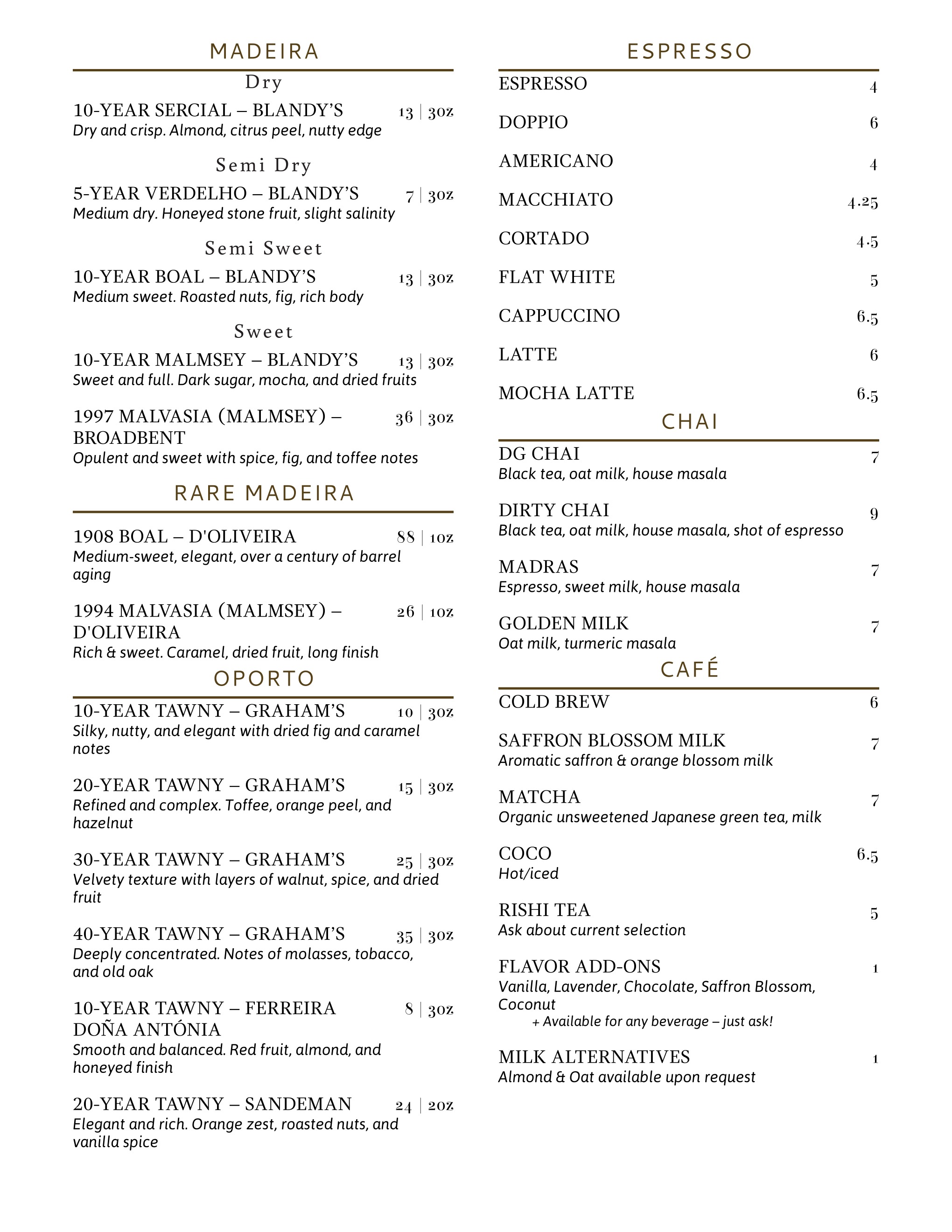 Please know that our Madeira and Port selection may vary due to allocations. We will kindly let you know exactly what we have available on site.